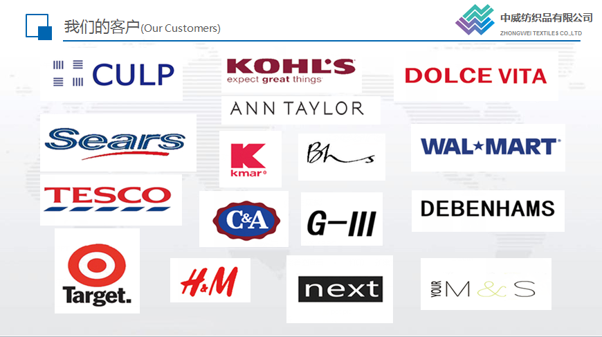 中威紡織主要經(jīng)營麂皮類家紡及各類服裝面里料,并可根據(jù)客戶要求研發(fā)、生產(chǎn)及深加工各類面料。公司產(chǎn)品遠銷美國、墨西哥、南美、歐洲等世界各地。公司自成立以來,憑著優(yōu)良的品質(zhì)、合理的價格以及完善的服務,贏得了國內(nèi)外客戶的信賴。目前公司已與世界眾多大品牌建立了良好的業(yè)務往來。
